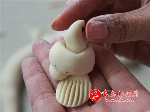花饃技藝傳承人胡志霞告訴記者:“剛開始就是覺得這個制作過程很有趣,一雙手能做出那么多造型,驚訝之余就特別想去學(xué)習(xí)這個手藝,那時候做花饃都是由家中長輩制作,自己在一旁看著不能輕易上手,所以我經(jīng)常都是用地里的泥巴來練習(xí)做花饃,不知不覺還真讓我學(xué)會了不少花饃的樣式。但是現(xiàn)在大家都一門心思想著掙錢,年輕一代的更是耐不下性子來學(xué)習(xí)制作花饃,而蒸花饃又是個費神勞力的力氣活,和面、醒面、揉面,既講究干濕均勻,又要注意力道,還要求制作者必須具備精熟的技藝,否則這普通的面團很難做成各種栩栩如生的小動物或花兒形狀的花饃。”kQr安康新聞網(wǎng)