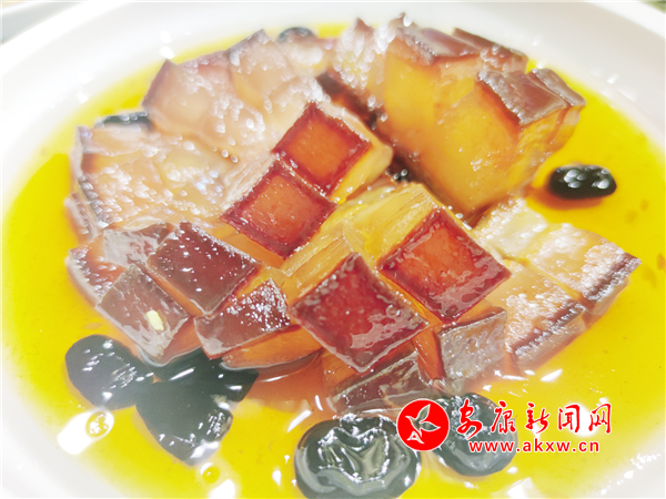 推薦理由:這道菜選用肥瘦相間的五花肉,切成小方塊,配以紅棗、蜜汁調(diào)味,大火蒸制成型后,菜品形色如櫻桃般嫣紅誘人,味道酥爛肥美,甜香豐腴、入口即化,是色香味俱全的美味佳肴,擺在席面上,好看又好吃,且顏色喜人,寓意很好,是一道非常適合宴請賓朋時品嘗的菜肴。