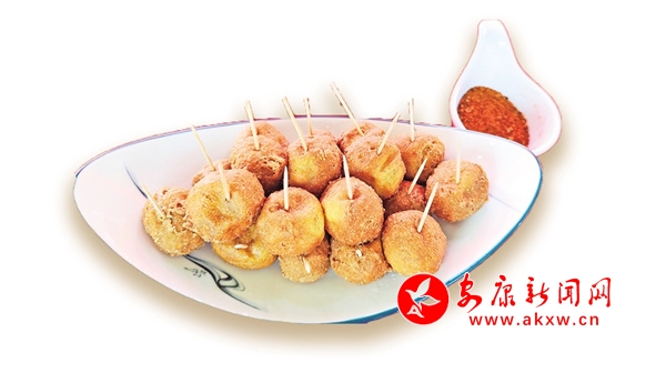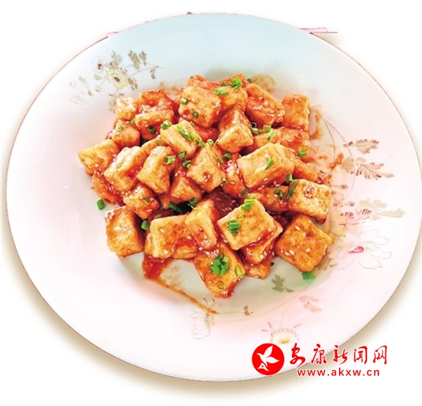 “黃金豆腐卷”的造型猶如一個藝術(shù)品,看似孔雀開屏,紅、白、黃、綠多色相間,看一眼就讓人嘴饞;“豆腐丸子”菜名取其形態(tài),一口咬下去,味覺的矜持在瞬間崩塌,只有無窮滋味在口中回蕩; “荷花豆腐”看似蓮蓬,豆腐潔白如芙蓉,色澤悅目,口感爽滑軟嫩。繡球豆腐、荷花豆腐、臘肉豆腐蒸鮰魚、醬燒豆腐、菊花豆腐、槐花豆腐、吊罐豆腐燉土雞等一道道細膩綿滑、清香鮮美、香味濃郁的佳肴頗受青睞、備受好評。