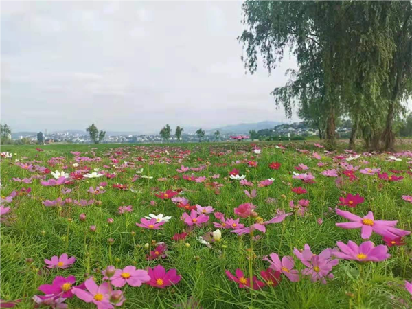 花卉種類(lèi):格桑花、千日紫、火焰雞冠花、萬(wàn)壽菊、百日草、向日葵;還有月季玫瑰樹(shù)等。