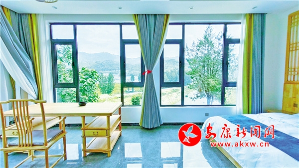 最別具特色的是山邊一處親子套房,客房是原木風(fēng),茶幾,椅子,床頭,都是不規(guī)則形狀的實(shí)木,白色的床品,原木色的家具地板,淺色的窗簾,溫柔而潔凈的色調(diào),讓人卸下一身負(fù)累,每一個(gè)細(xì)胞都得以放松。推開(kāi)主臥后門(mén),一道石階下到小院,一截截原木,圍合成最原生態(tài)的欄桿,憑欄遠(yuǎn)眺,入眼處處是風(fēng)景,民宿所有細(xì)節(jié)都為了讓客人與山林更完美的融合在一起,背依蒼山枕流云,面朝松林沐天光。應(yīng)了“祈福女?huà)z山,康養(yǎng)吉祥地”的發(fā)展理念!XHe安康新聞網(wǎng)
