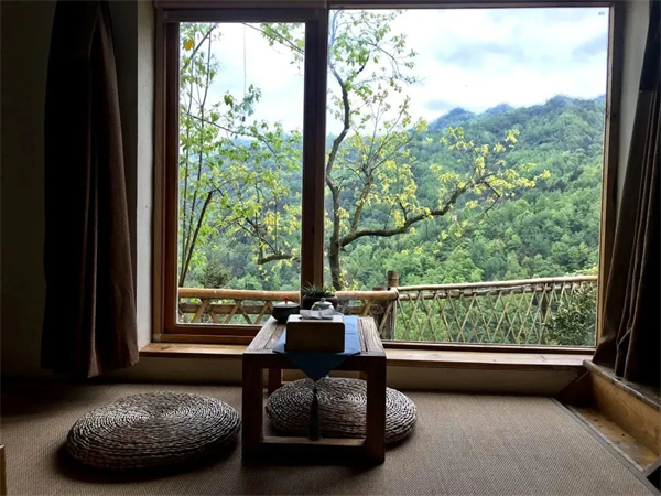 南山云見民宿共有11個陜南民居,集茶舍、住宿、餐廳、書院、美術館為一體,穿梭于鳳凰山中的康養(yǎng)文化健身步道,宛如一條絲線,串聯(lián)了大南溝的龍?zhí)、龍隱谷、凈春山、講經(jīng)臺、逍遙石、明月寺、南山云見民宿等景點。