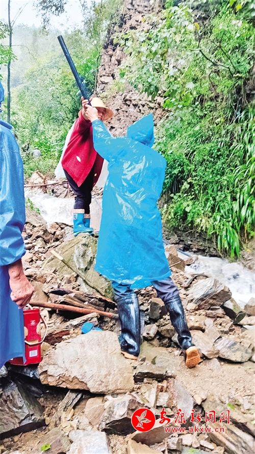 10月5日,紫陽縣高橋鎮(zhèn)雙龍村村“兩委”干部和村級水管員堅守崗位,排查搶修飲水管道。胡波 田自國 攝