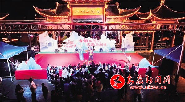 漢陰縣雙河口古鎮(zhèn)景區(qū)正在進(jìn)行文藝演出。王建霞 攝WCB安康新聞網(wǎng)