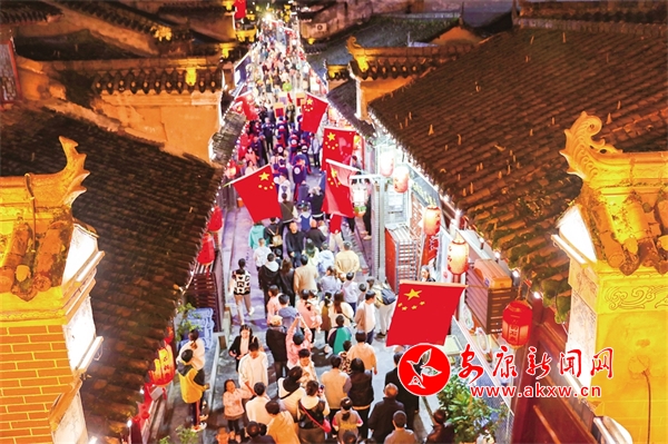 9月29日晚,漢陰縣雙河口鎮(zhèn)“古韻雙河口 文旅煥新生”文旅系列活動(dòng)正式啟動(dòng)。圍繞十一黃金周假期,雙河口古鎮(zhèn)景區(qū)陸續(xù)舉辦了“古風(fēng)游園”“宋韻美食節(jié)”“松風(fēng)雅韻”“古鎮(zhèn)音樂節(jié)”“非遺民俗展演”“篝火煙花秀”等系列活動(dòng)。王建霞 熊樂 攝WCB安康新聞網(wǎng)