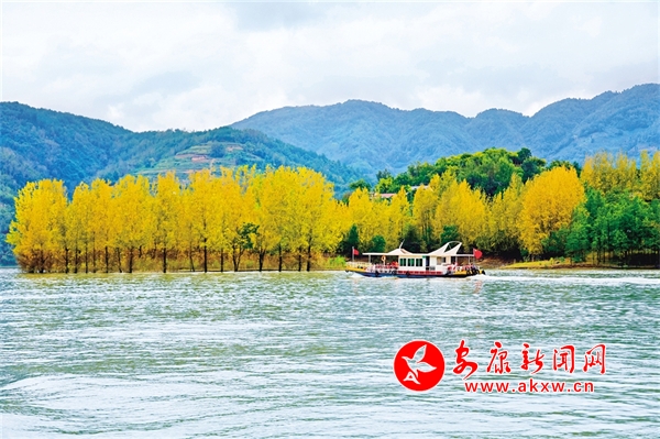 10月3日,秋日的瀛湖如詩(shī)如畫,吸引眾多游客前來打卡。周濬 攝 WCB安康新聞網(wǎng)