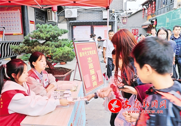 中秋國(guó)慶節(jié)假期,石泉縣在景區(qū)景點(diǎn)以及人流、車流集中地安排志愿服務(wù)點(diǎn),積極組織文明實(shí)踐志愿者,為游客提供旅游咨詢、文明引導(dǎo)等服務(wù)。董長(zhǎng)松 攝WCB安康新聞網(wǎng)