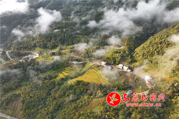 大湖溪位于鎮(zhèn)坪縣城關(guān)鎮(zhèn)友誼村,距離縣城大約半小時(shí)車(chē)程。沿207省道順南江河而下,穿過(guò)南江湖大壩就到了谷口。一條嶄新的柏油馬路沿溪流伸向大山深處,茂密的森林覆蓋著山巒,星星點(diǎn)點(diǎn)的農(nóng)舍、民宿集群和土地,若隱若現(xiàn)地掩映在云霧繚繞的群山之間,許多保存完整的巴山古老傳統(tǒng)民居石板屋,炊煙裊裊,與淡淡的晨霧相互交織,構(gòu)成了一幅渾然天成的水墨畫(huà)卷。放飛手中的無(wú)人機(jī),我貪婪地捕捉這一幅幅夢(mèng)幻般的景致。