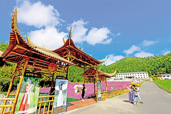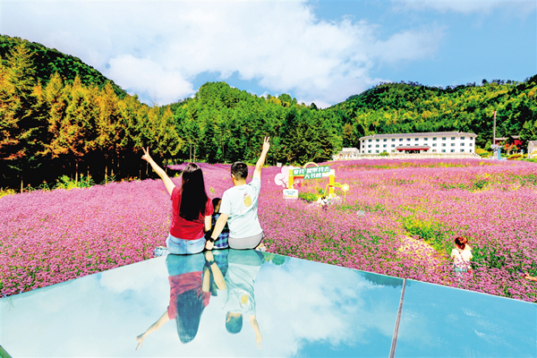 中秋節(jié)期間,平利千家坪森林公園天書(shū)峽馬鞭草花競(jìng)相怒放。如畫(huà)的景色吸引眾多游客前來(lái)賞景打卡。(詹永桂 攝)7NW安康新聞網(wǎng)