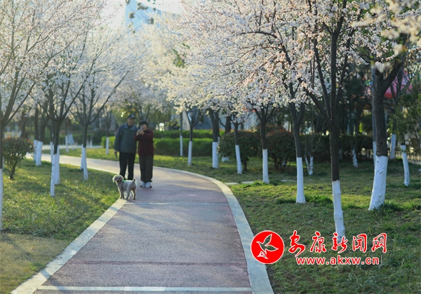 花朵盛開,柳樹垂絲,遠處的城市建筑若隱若現(xiàn)。人們在江邊漫步、休憩,享受著春日里的美好時光。此時的畫面將現(xiàn)代文明與自然生態(tài)完美融合,讓人感受到城市中一抹特有的清新與寧靜。 ghv安康新聞網(wǎng)