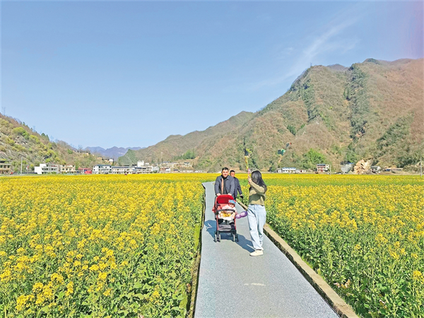 春暖花開,旬陽市仁河口鎮(zhèn)水泉坪千畝油菜花海競相綻放,慕名而來的游客們在觀光步道上觀光散步,三五伙伴一起拍照打卡、合唱民歌,欣賞高山出平川的獨特自然風光。77t安康新聞網