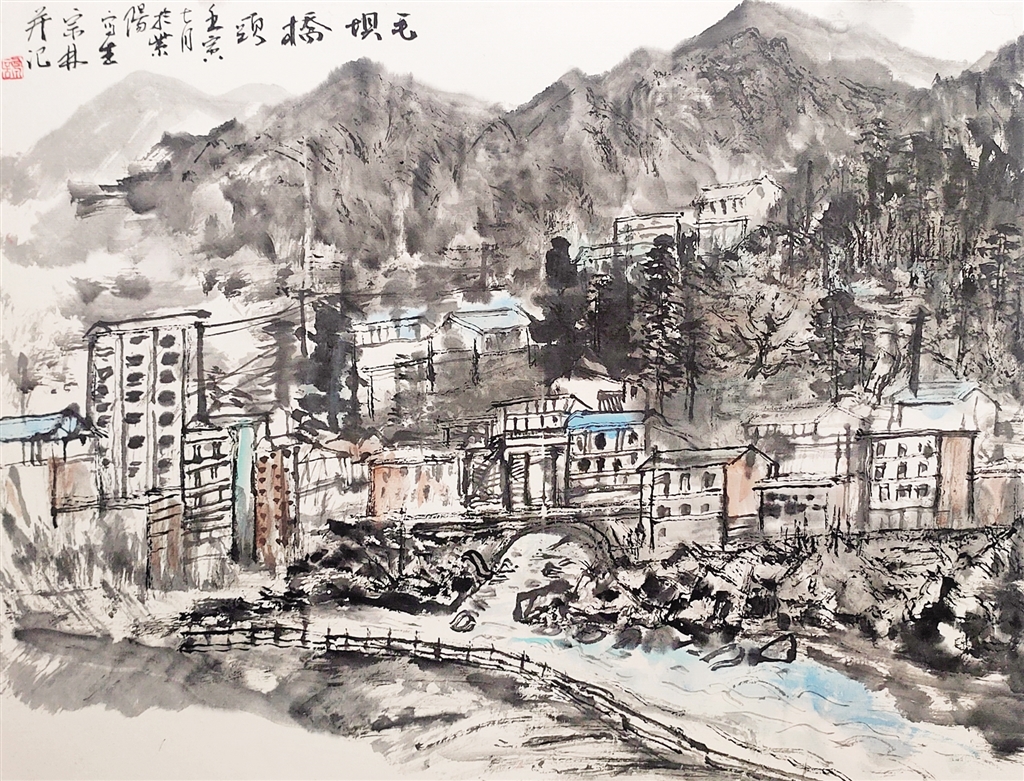 今年夏天我有幸參加了省文化廳三區(qū)藝術(shù)人才培訓(xùn),我隨陜西國畫院的耿齊、喬建業(yè)、白霜亮等老師,又一次踏進了紫陽。剛到毛壩一下汽車,熱浪撲面襲來。舉目望去,嵐山如黛、滿目翠綠、熱風(fēng)在兩腿間纏繞,好熱的紫陽,好藍的天!陜西國畫院的領(lǐng)導(dǎo)和老師,克服疫情和暑熱帶來的困難,發(fā)揮文化在鄉(xiāng)村振興戰(zhàn)略中的引領(lǐng)作用,重視基層美術(shù)創(chuàng)作和人才隊伍的培養(yǎng),用畫筆描繪青山綠水。為此,他們做了充分準備和精心策劃,選擇在紫陽毛壩辦班,堅持晚上授課,白天觀摩寫生。老鄉(xiāng)的樓頂上、屋檐下是我們的教室,茶山上、鐵道旁是大家的課堂,小溪旁、樹蔭下到處是寫生的老師和學(xué)員。