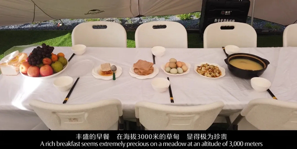 豐盛的早餐,在海拔3000米的草甸,顯得極為珍貴。彩色雞蛋、蜂蜜面包、生態(tài)烤腸、草甸稀飯多種選擇,可以滿足不同的口味,激發(fā)著多情的味蕾。