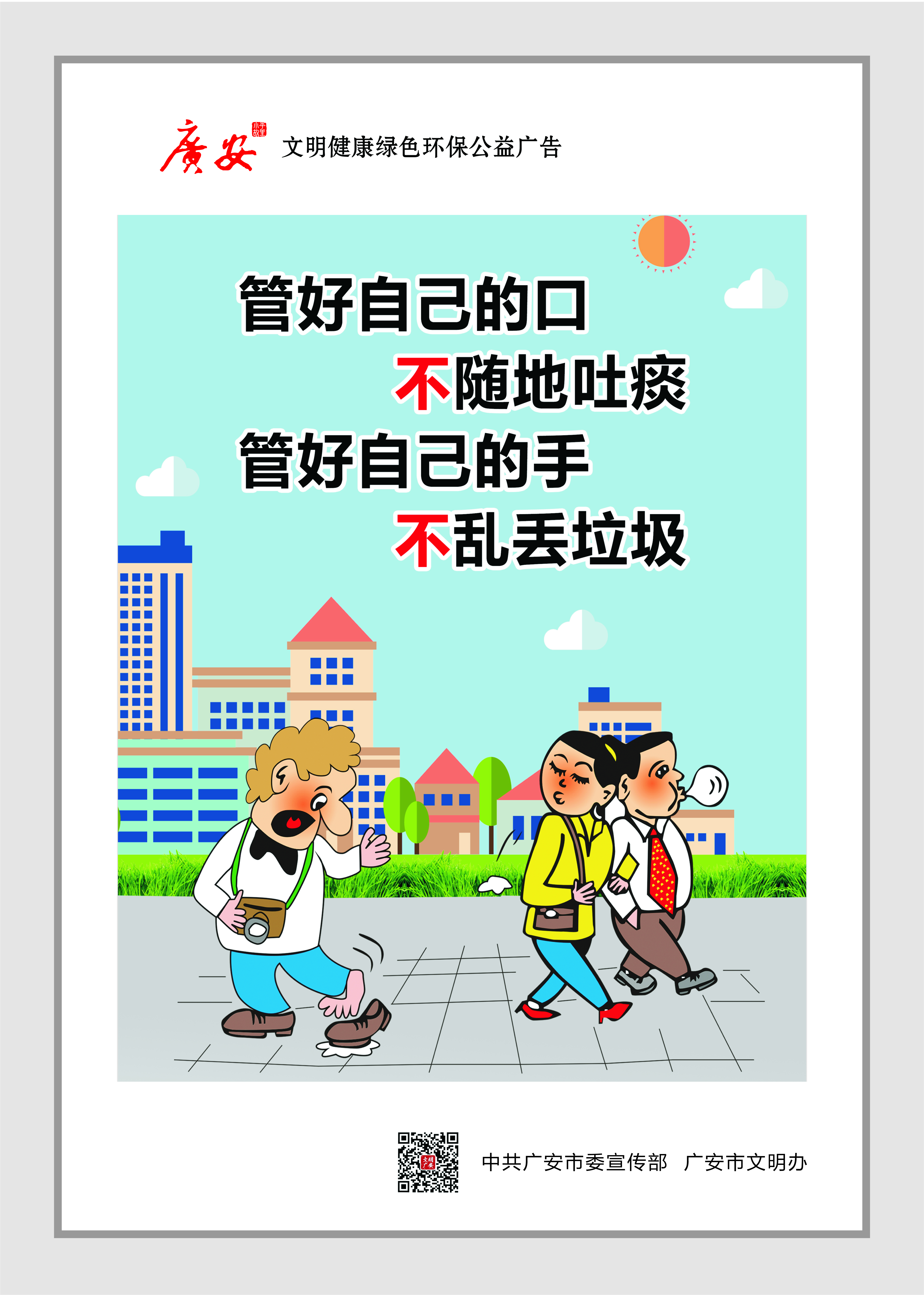 管好自己的口 不隨地吐痰 管好自己的手 不亂丟垃圾